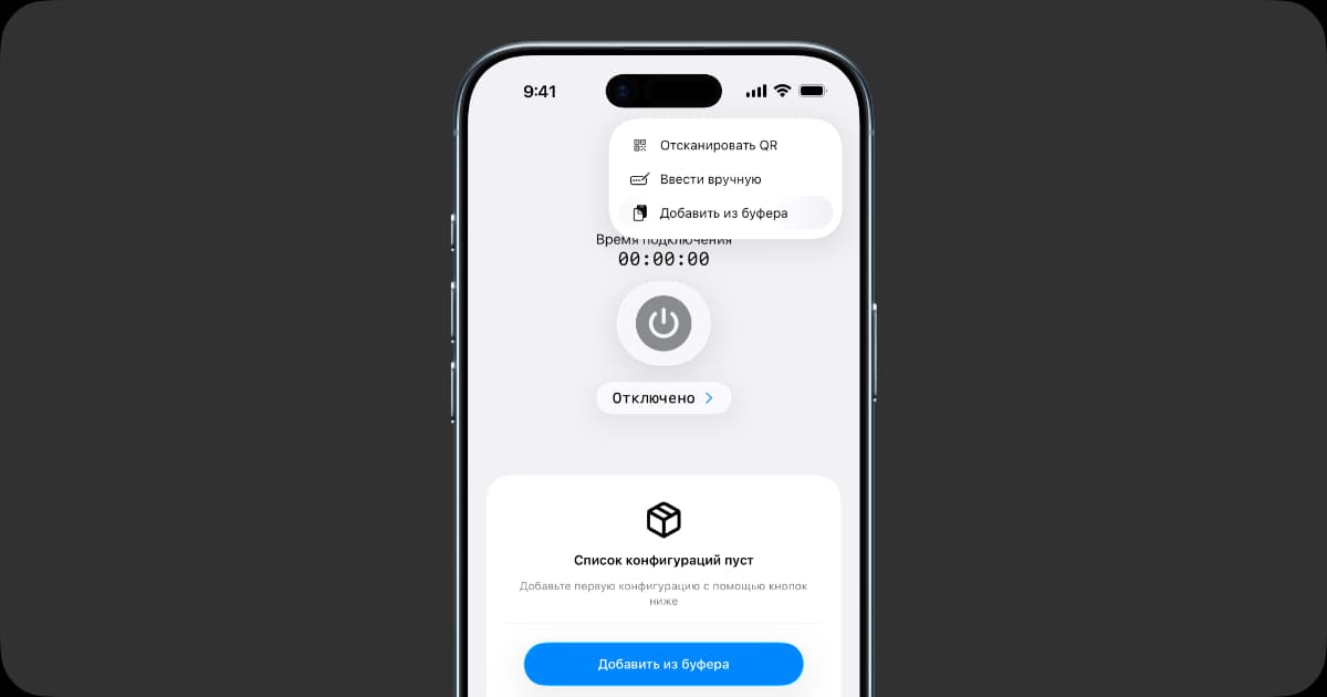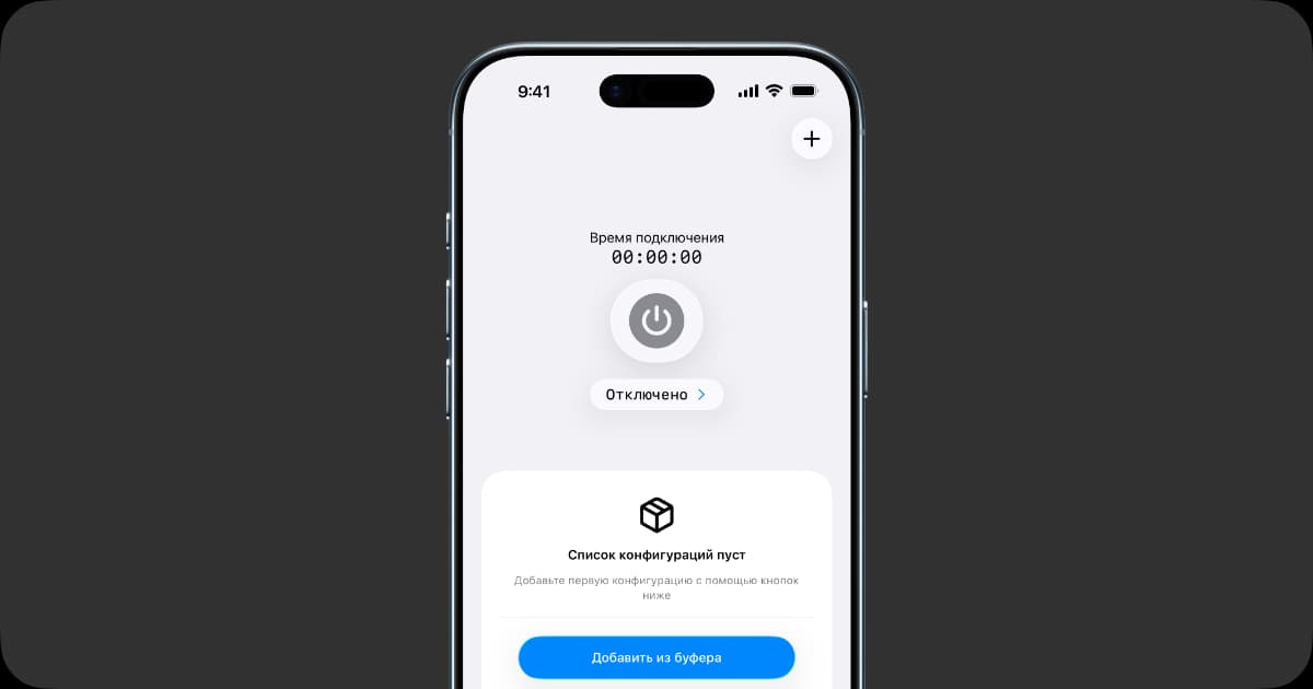 Теперь откройте приложение v2RayTun, нажмите на кнопку «+», а затем выберите «Добавить из буфера»