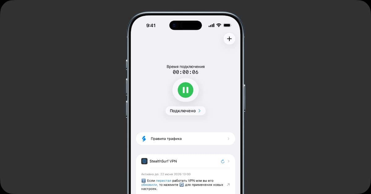 Приложение может запросить разрешение на добавление VPN-конфигурации в систему — подтвердите его.
