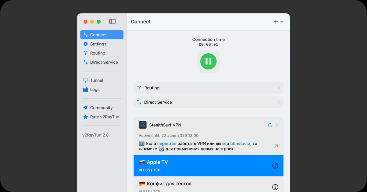 В этом разделе описаны шаги по установке и настройке v2RayTun на вашем устройстве. Мы разберём, как скачать приложение, добавить конфиг и запустить приложение.